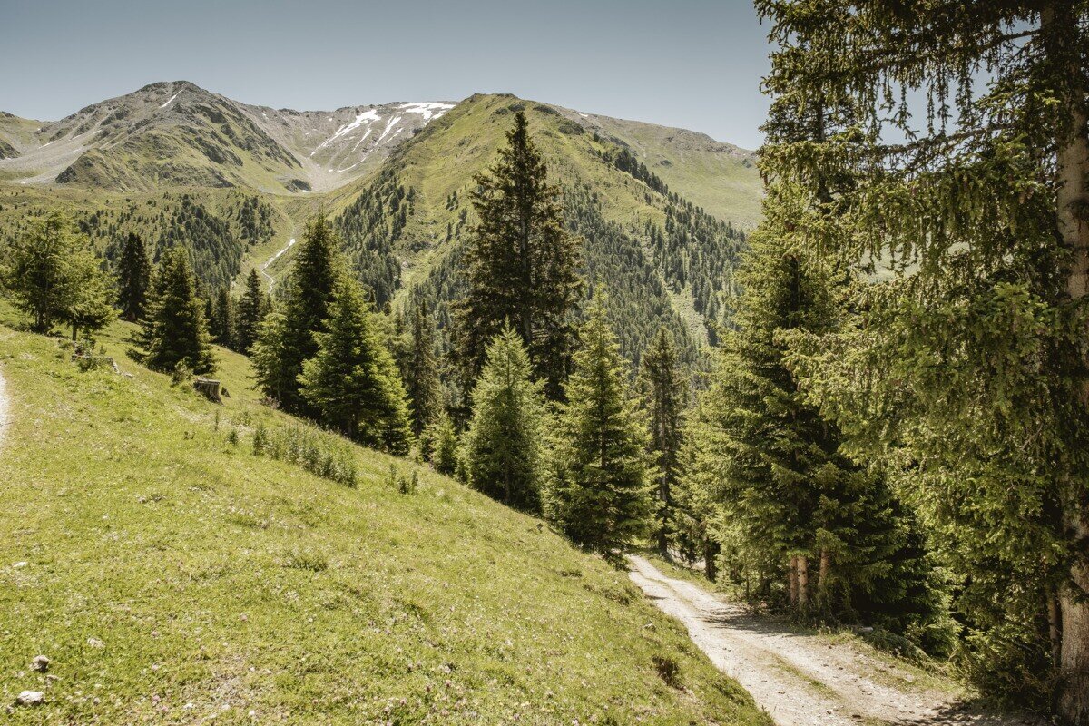 Starting at Greiter Säge at the entrance to the Pfundser Tschey, follow the signs toward Gschneier Alm. The route follows a mountain road with several switchbacks uphill to Gschneier Alm. The return follows the same route back to Greiter Säge / Tscheylücke.