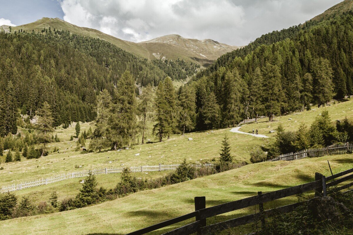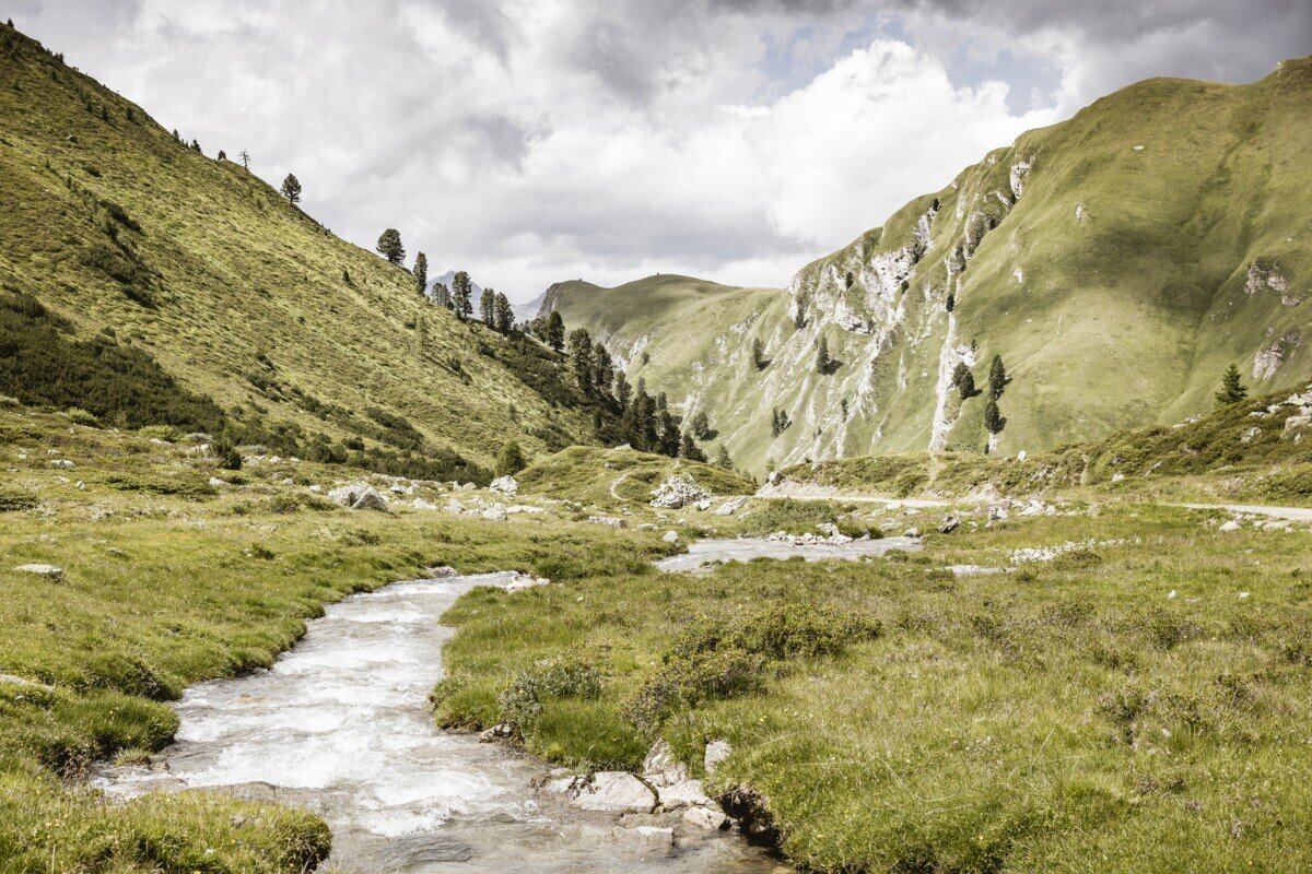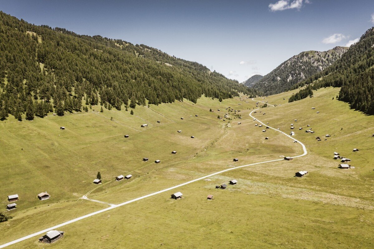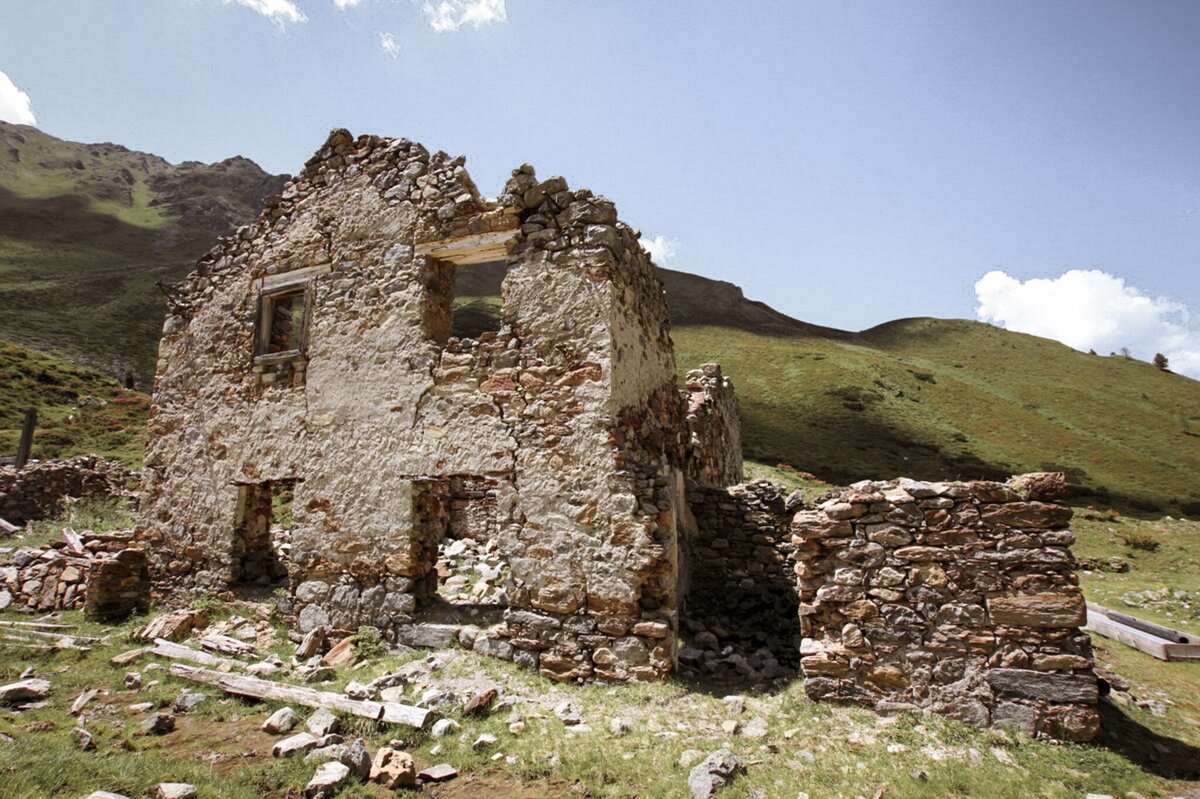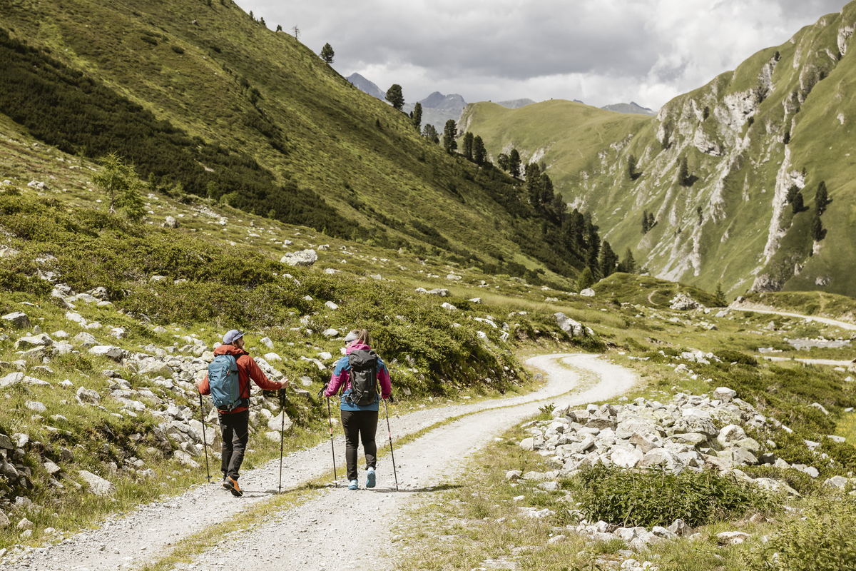 The hike begins at the Greiter Säge, crossing the bridge and following the trail markers toward Gschneier Alm. Above the pasture, the ascent to Lahnkopf starts, offering impressive views from the summit. The descent continues along a trail to Platzer Alm. Passing the ruin of the old ore and silver processing buildings, the route leads into the Pfundser Tschey high valley. Finally, the trail passes by the chapel Maria Schnee before returning to the starting point.