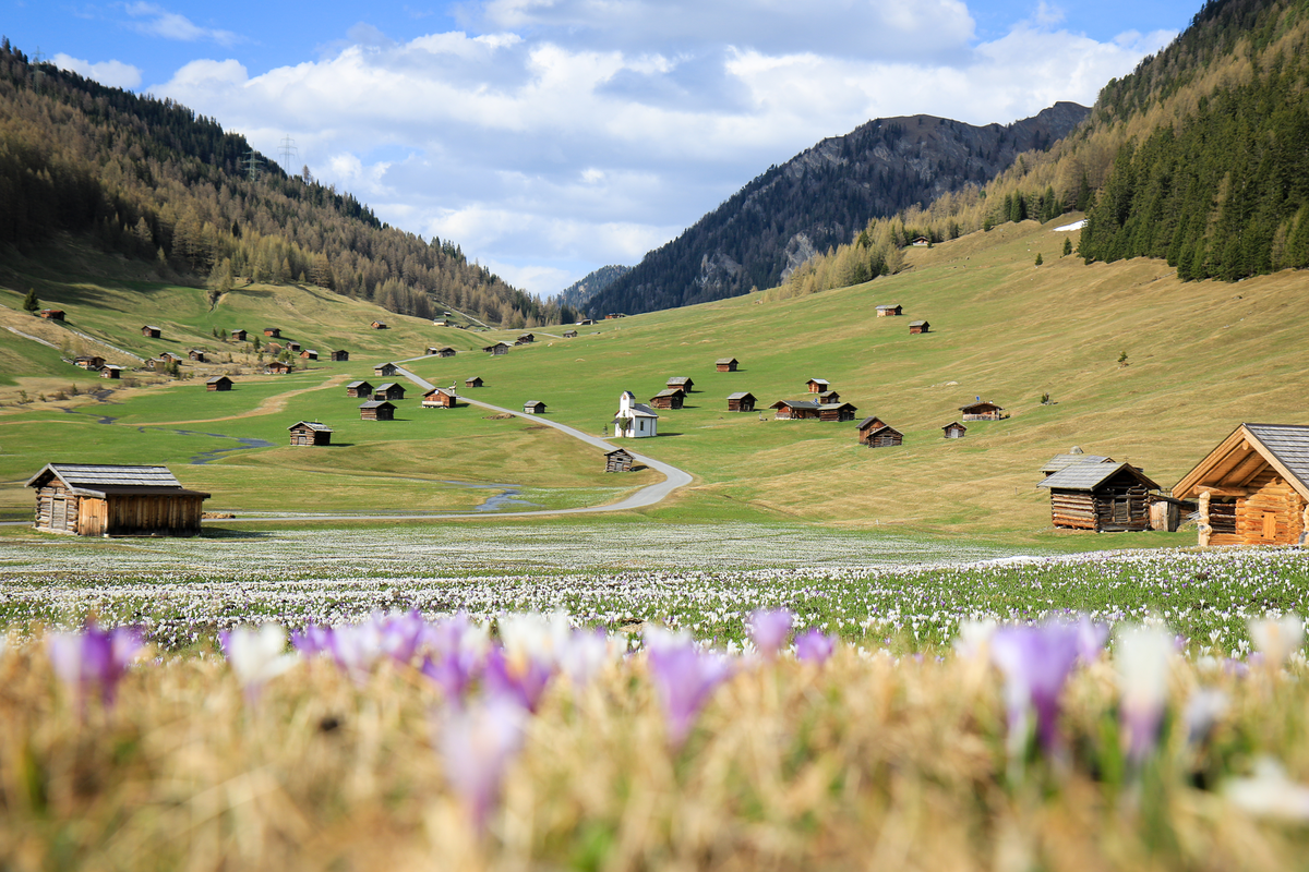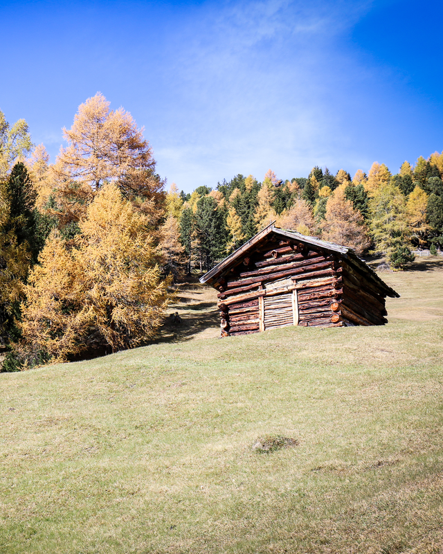 Each barn in the Tschey belongs to a farmer - the meadows aren’t Alpine pastures, but rather are mowed by the different farmers. There are the so-called kitchen huts - these were and still are, as the name suggests, used for spending the night and cooking. The other hay barns, known locally as “Stoodl” or “Pilla” are used for the temporary storage of harvested hay.