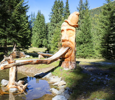 In the immediate vicinity of the alpine pasture, artists from Austria & abroad have created an alpine art exhibition made of Swiss stone pine. In the middle of the sculpture park you will also find an idyllic barbecue area, many streams and a small lake - the path there is suitable for strollers!