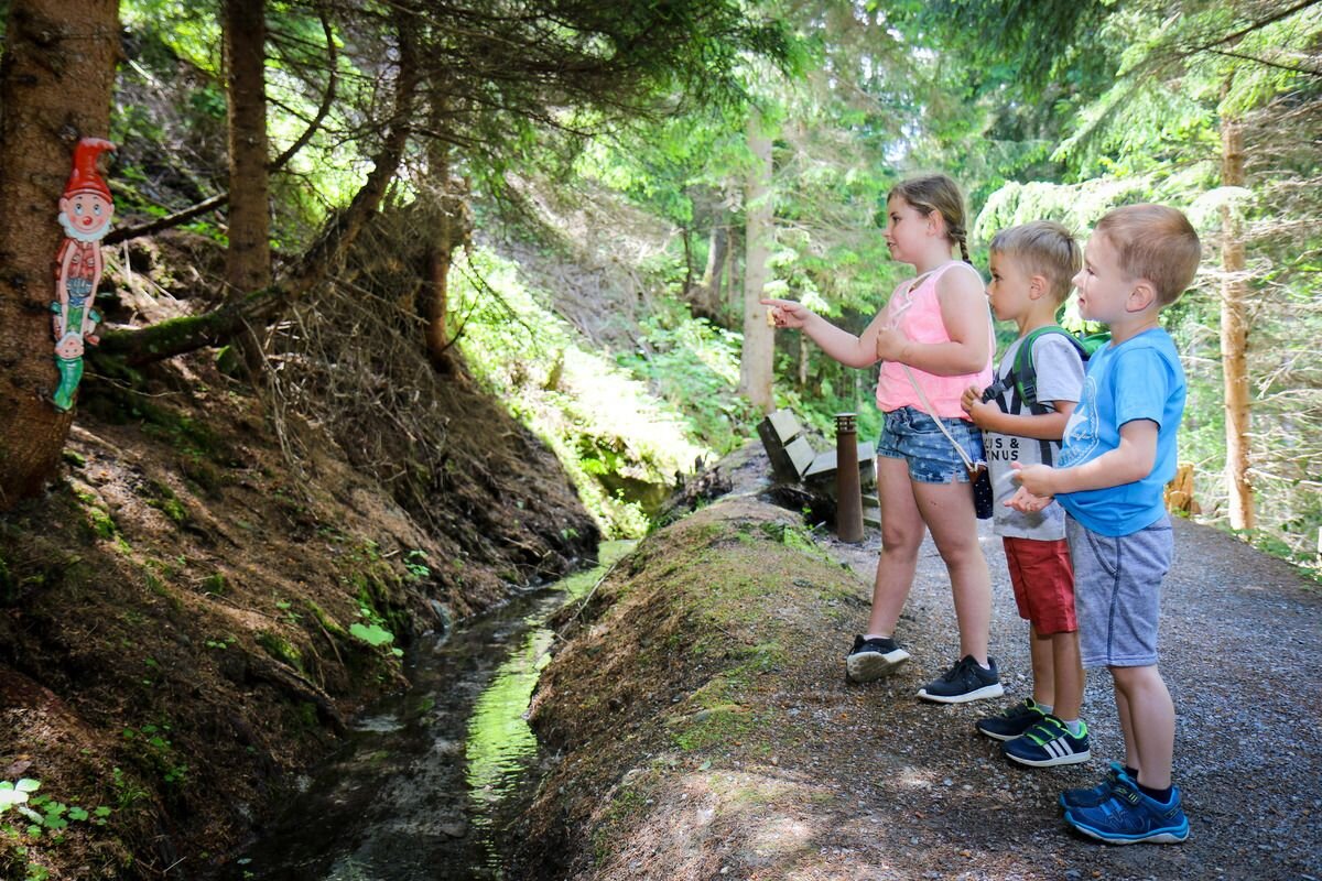 From the information office Pfunds you walk towards the village, over the bridge over the river Inn with the tower "Turaloch" up to the edge of the forest. The path starts on the right into the forest. The name comes from the Wasserwaal, which runs along this path. Tip perfect for families. Along the path there are small forest gnomes hidden. The adventure trail leads towards the Kajetansbrücke.