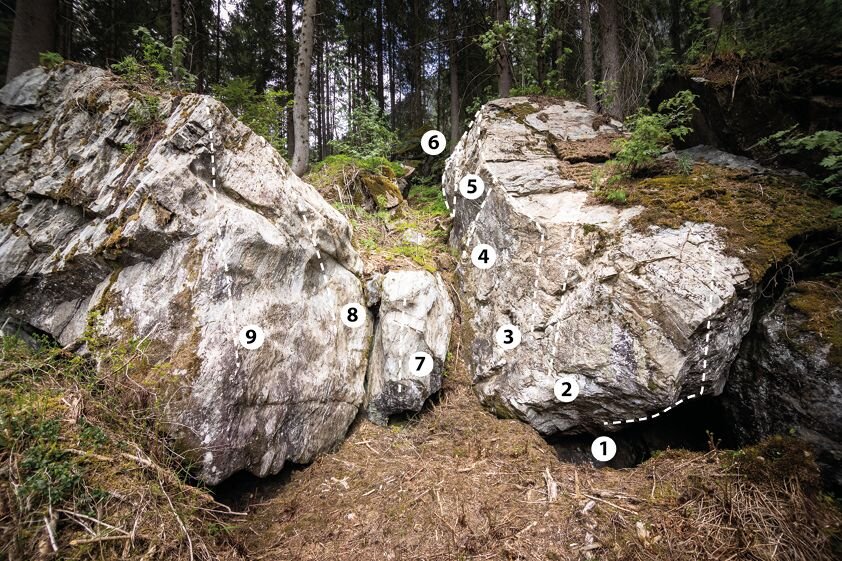 You have to master 9 boulder problems with a difficulty of 5a till 7b.