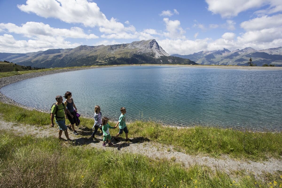 Passing tank traps and the historic bunker systems built under Benito Mussoloni in the years 1938 to 1942, you come to a magnificent viewpoint (approx. 2000 m). This promises a magnificent view of the clear Reschensee and the Vinschgau, with its mighty peaks such as the Ortler, Cevedale and Königsspitze. The way back to Stieralm is via the high moorland area Plamorterboden. From here, Hiking trail no. 33 leads back to the Bergkastel mountain station. Alternatively, you can descend via the Lärchenalm (path no. 34) to Nauders. (Variant: Descent to Reschen from Plamort.)