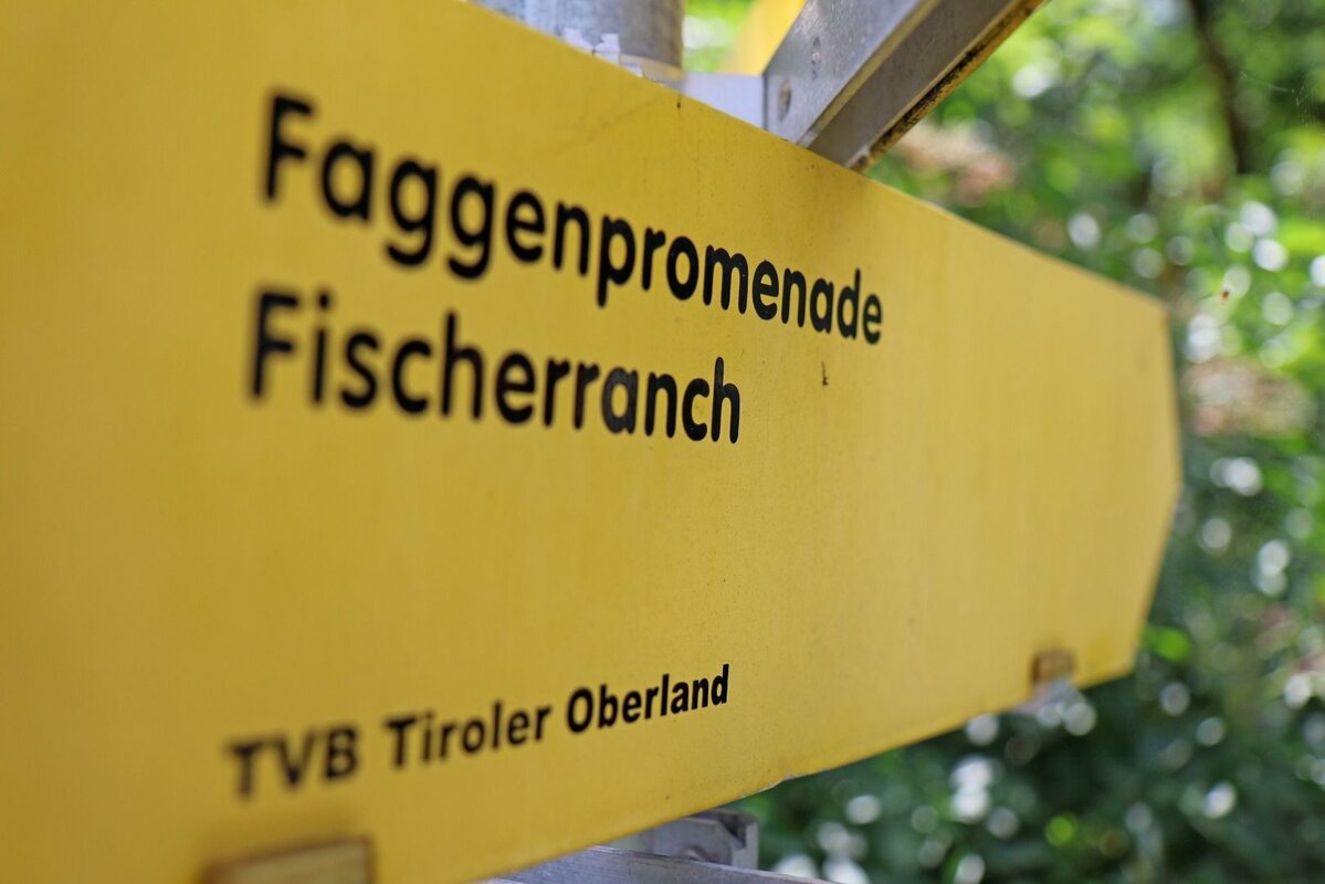 Follow in Prutz the Hintergasse and Dorfstraße until you reach the "Küchenstudio". Ascend along the old Fendler Weg until a forest path joins the road from the left. Follow this until you reach the Fendler Landesstraße. Cross the country road diagonally downwards and then follow the Leitenwald path until you reach the Kaunertal country road. On the way between Landesstraße and Faggenbach you reach the "Fischer Ranch". Return on the other bank to Faggen.